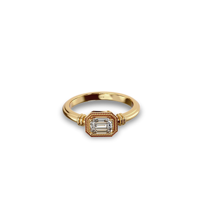 This Solitaire Diamond Ring features an elegant and minimalist design, set with a carefully selected 0.5 ct emerald-cut white diamond. Each diamond undergoes strict screening to ensure optimal cut, clarity, and brilliance.