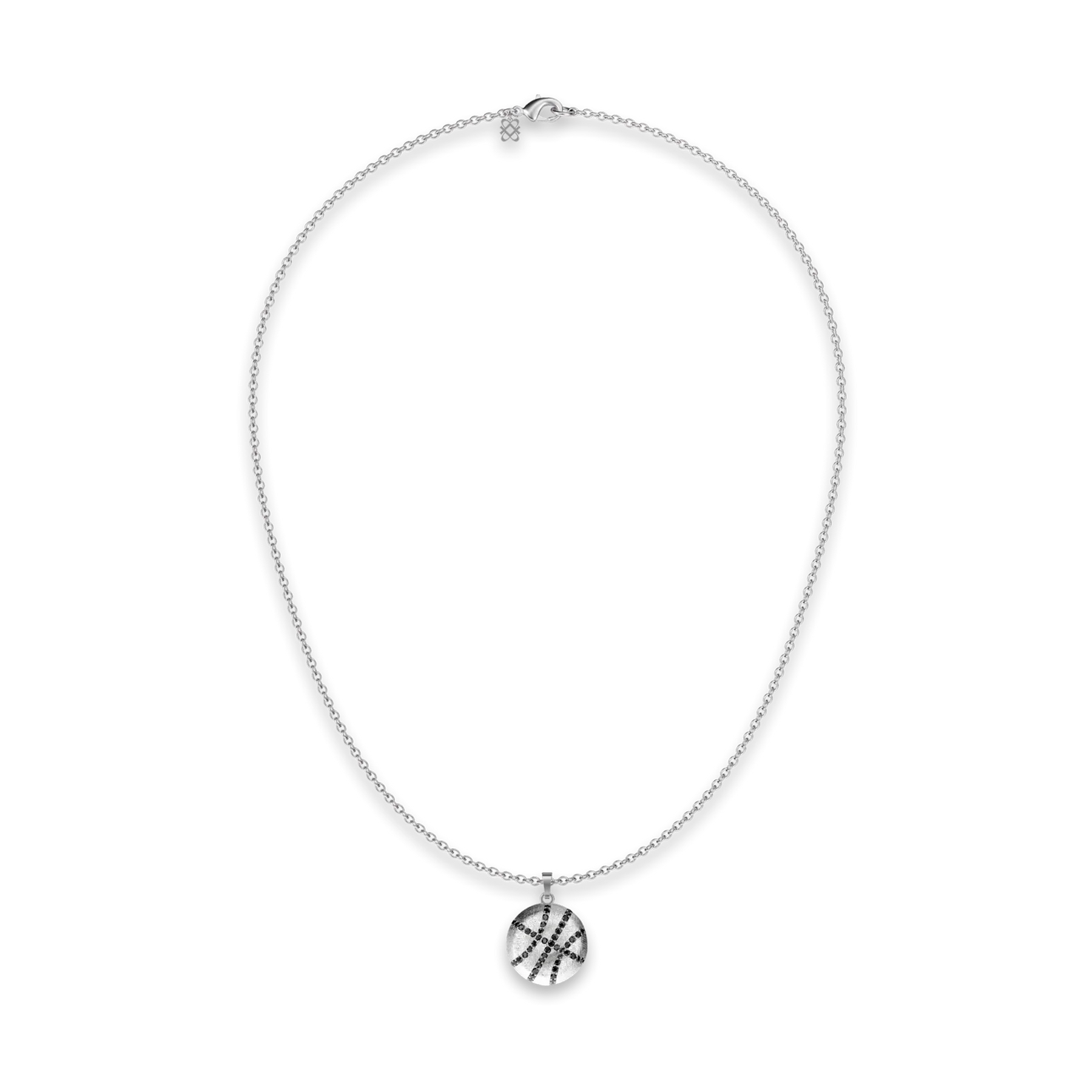 Meticulously crafted, the pendant recreates the unique grain and seam lines of a basketball, highlighting the raw energy of the game. Along the tilted and distorted contours of the miniature ball form, a total of 0.708 carats of shimmering lab-grown diamonds are delicately set into the seams—glistening like beads of sweat, illuminating the soul of defiance and drive.