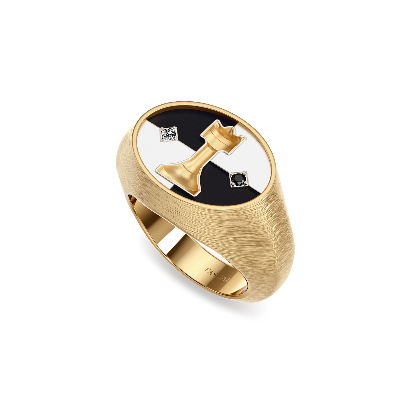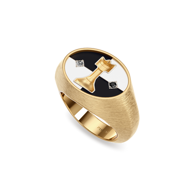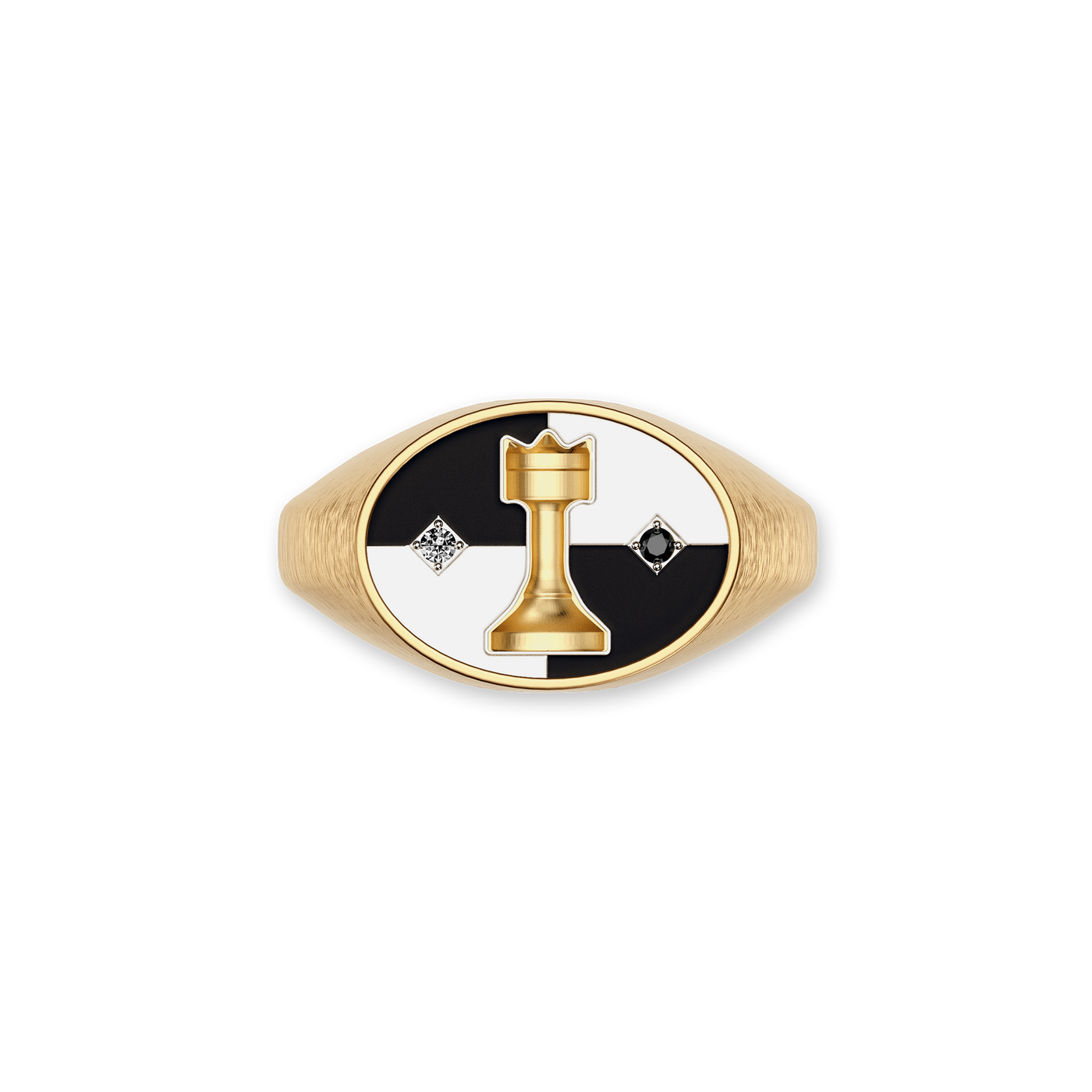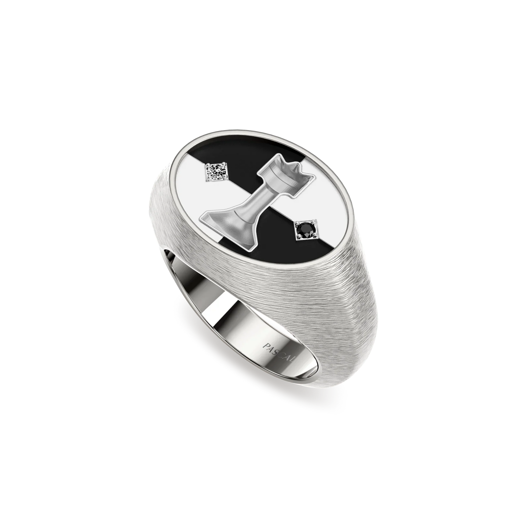 Discover the perfect blend of sport and elegance in this chess-inspired jewelry collection. Each piece is meticulously designed to incorporate distinctive chess motifs, achieving both sophistication and versatility. The interplay of black and white creates a timeless duel between light and shadow.