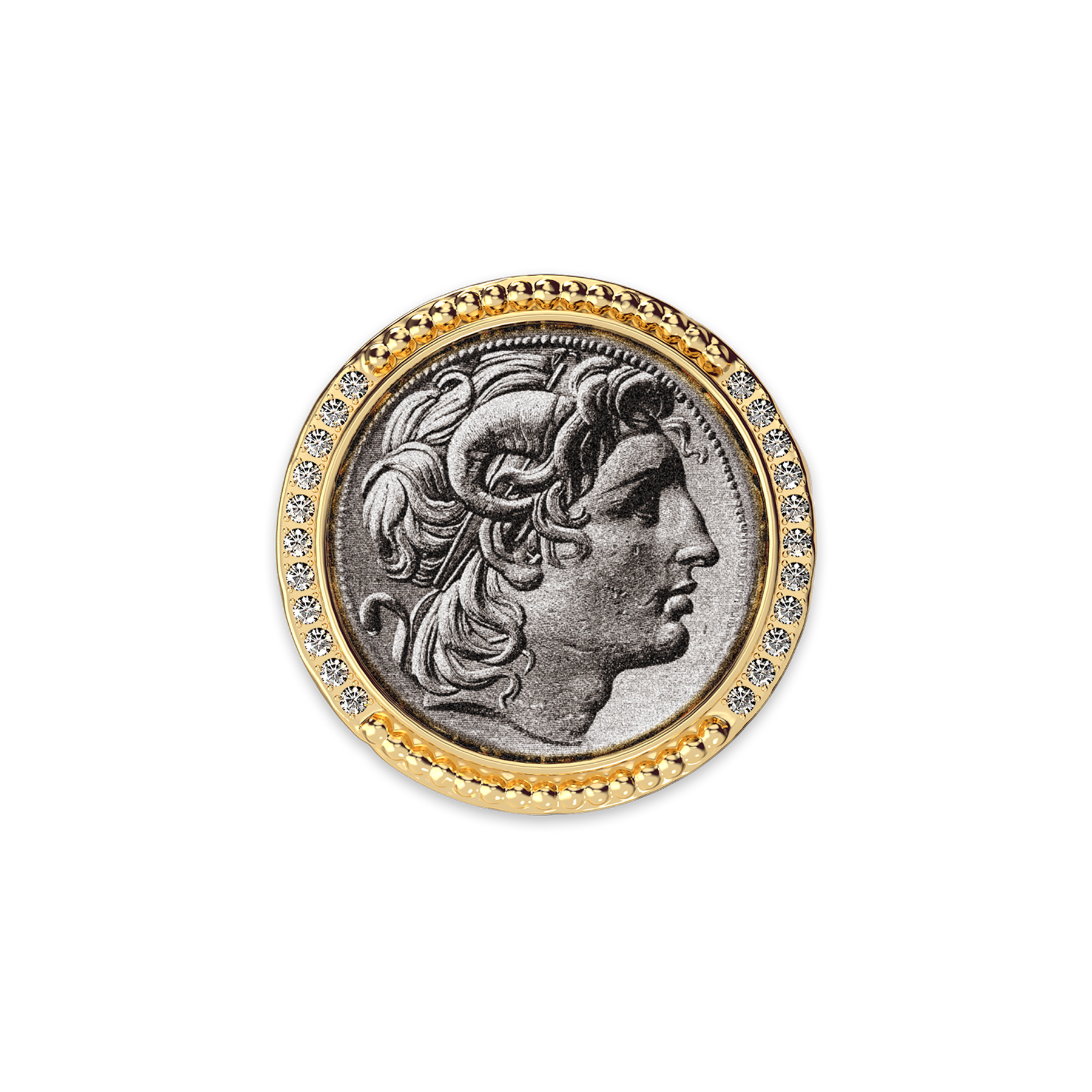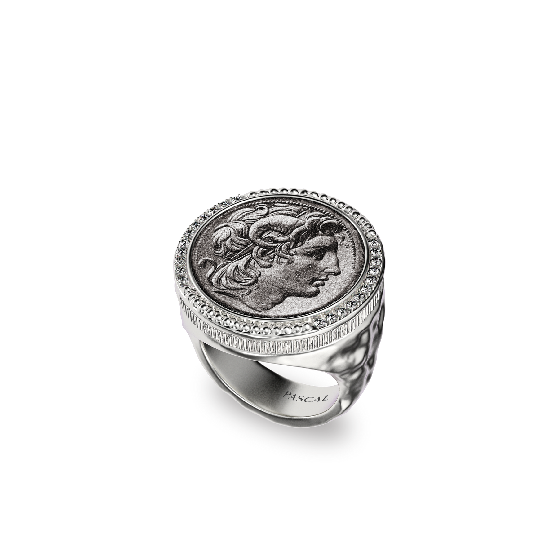 'The Great Civitas' Alexander the Great Coin Signet Ring, White Diamond