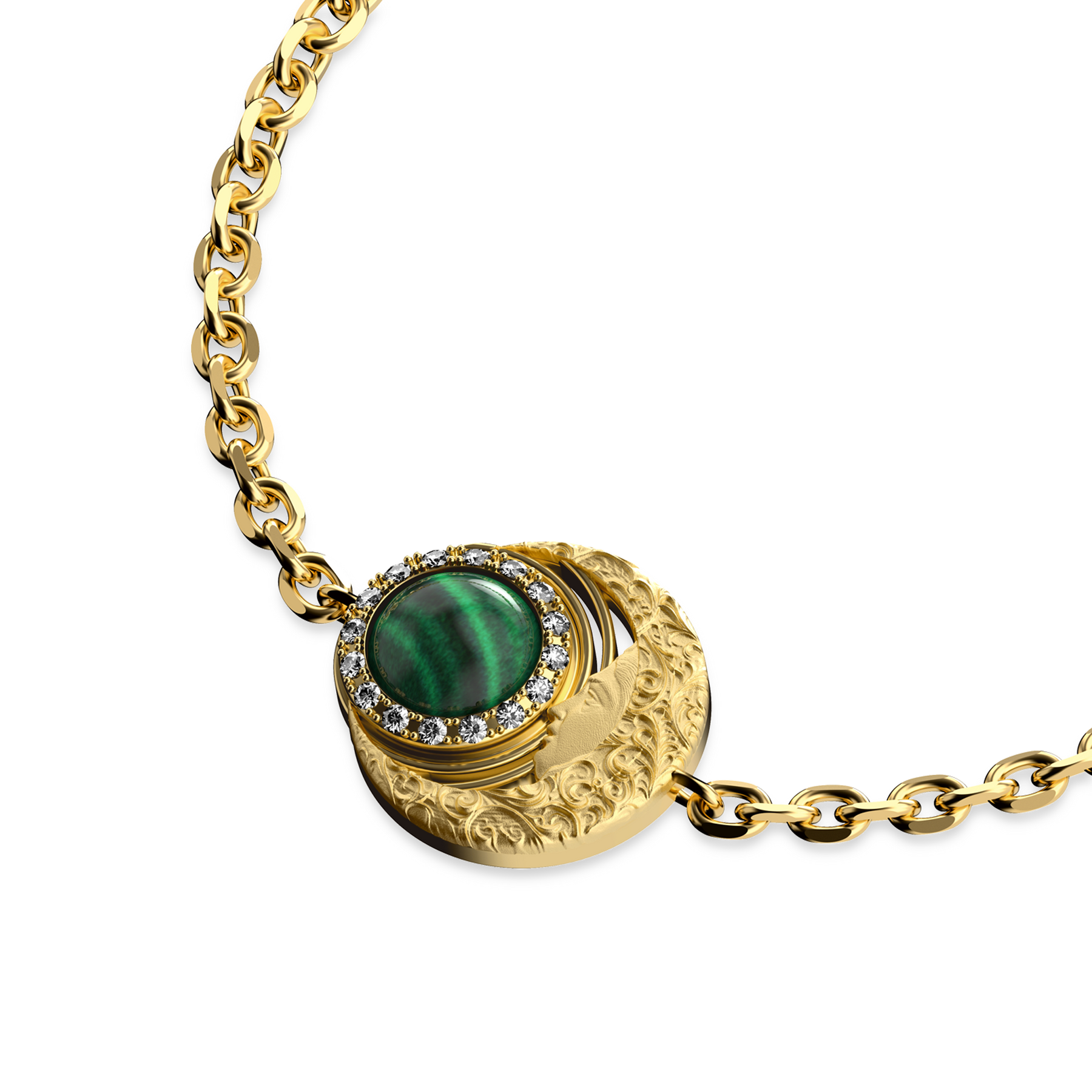 18K Yellow Gold Vermeil / White Diamond / Malachite
