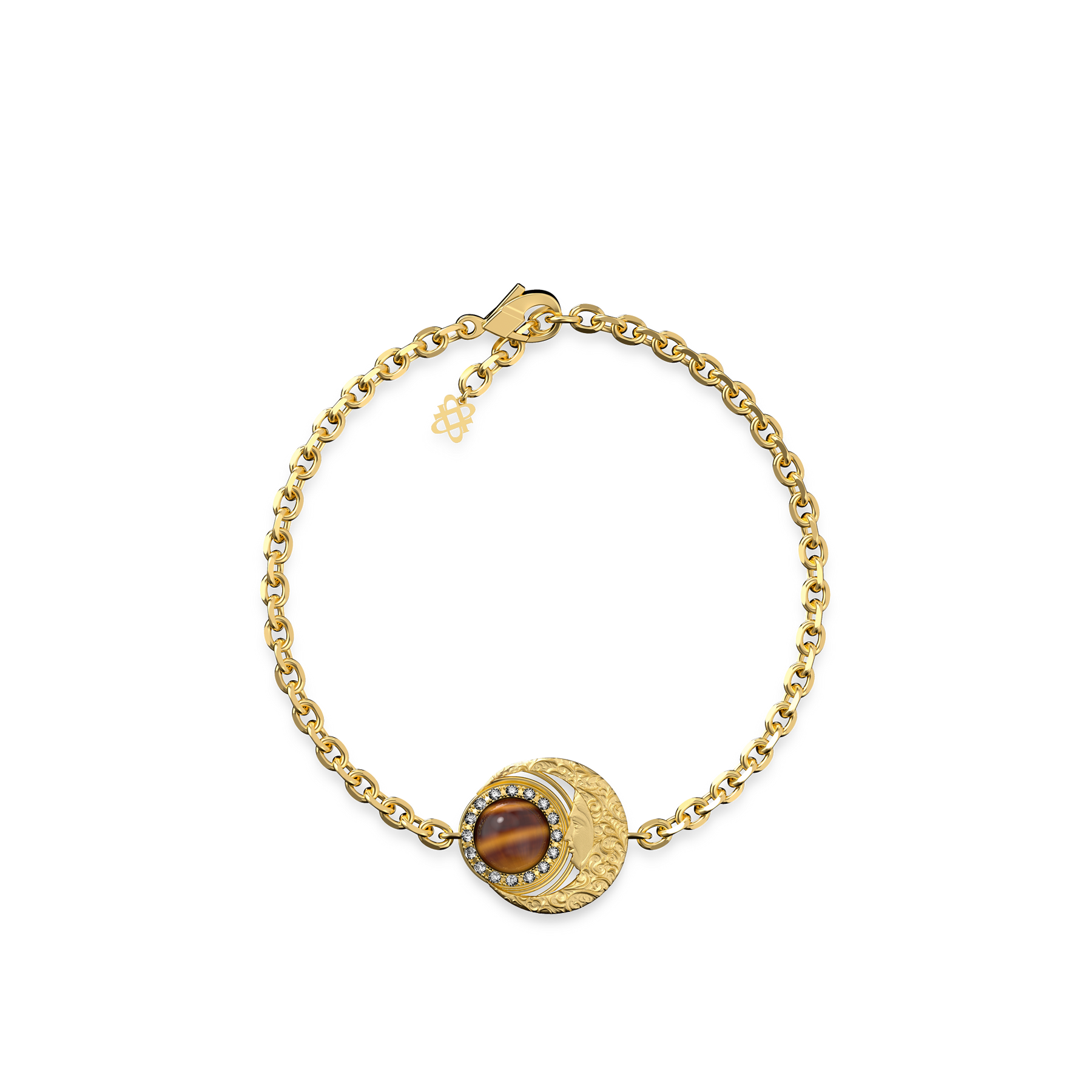 The Moon represents intuition, emotion, and the sacred rhythm of transformation. It reflects your inner cycles and the wisdom of gentle strength. Offered in both bracelet and pendant designs, the Moon allows you to align with your spiritual needs through gemstone choice: Malachite guides growth and self-discovery; Tiger’s Eye balances emotion and clarity, anchoring confidence through change; Obsidian protects and purifies, keeping energy grounded and true. Surrounded by shimmering lab-grown diamonds, each piece glows like moonlight over still water—illuminating your path with peace and inner light.