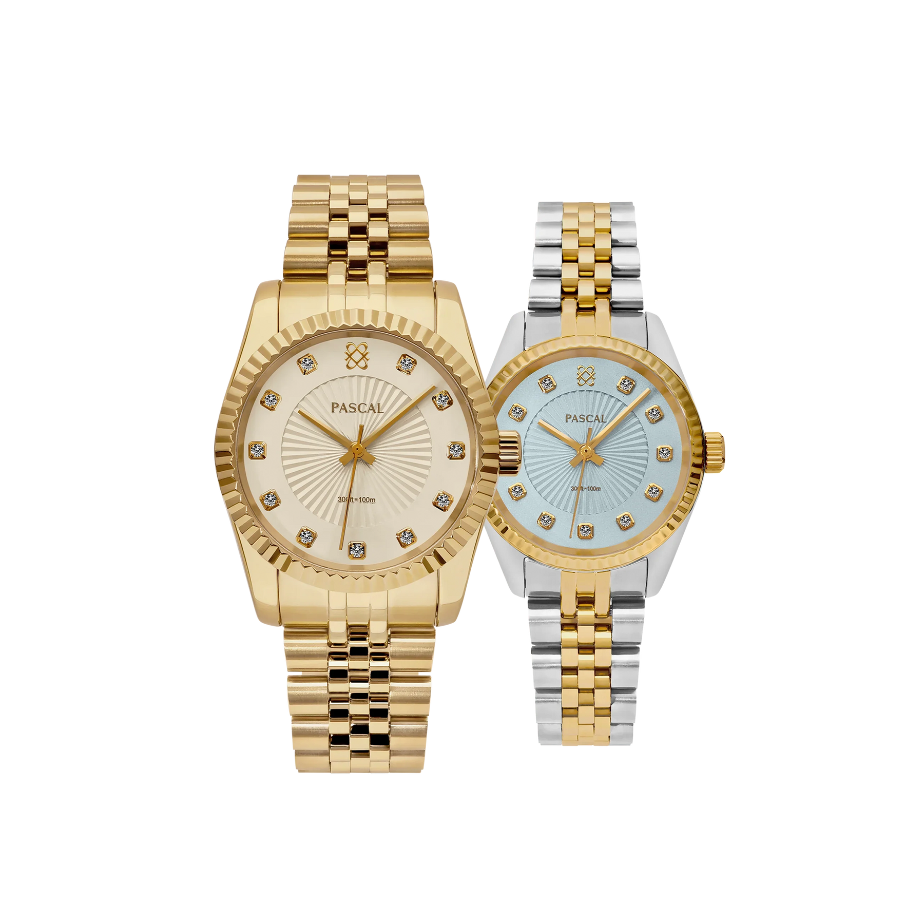 With its grey-blue dial and gold & silver case, this watch exudes youthful charm. Its distinctive concave radial texture sets it apart, making it a perfect match for both casual wear and stylish ensembles.