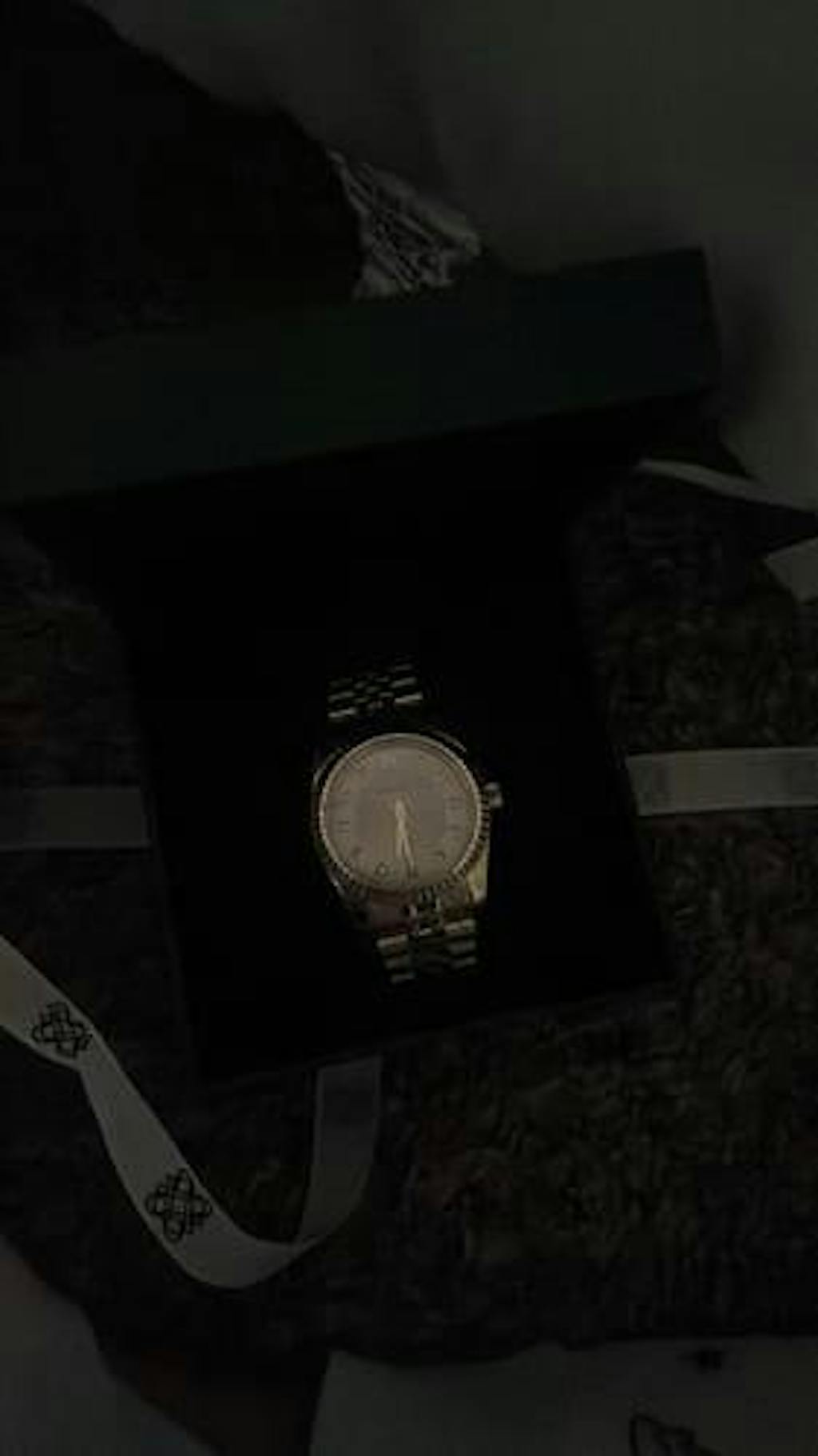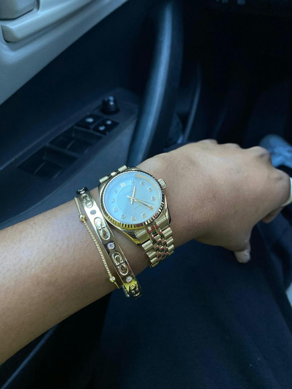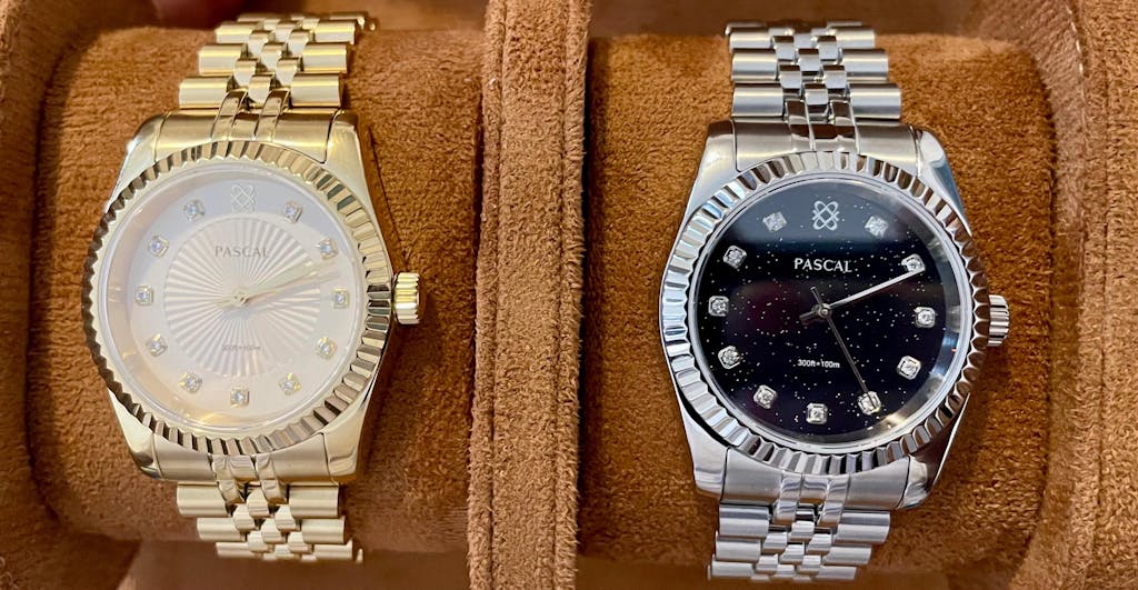 With its beige dial and gold case, this timepiece emanates a distinctive vintage allure. The dial displays a concave-convex radial texture, suitable for both casual wear and sophistication. Adorned with lab-grown diamonds, each hour marker sparkles with enchanting brilliance, enhancing the overall elegance of the design.