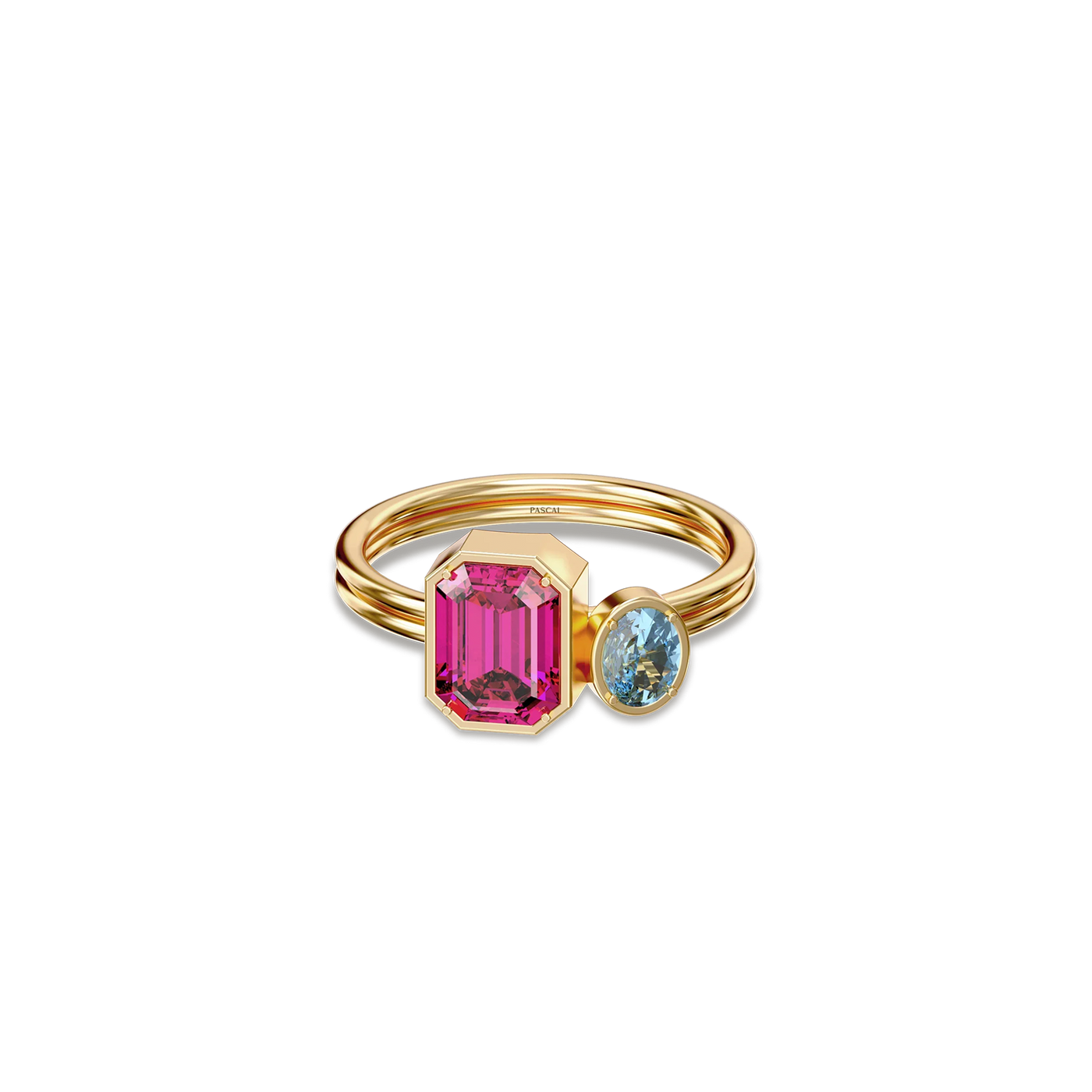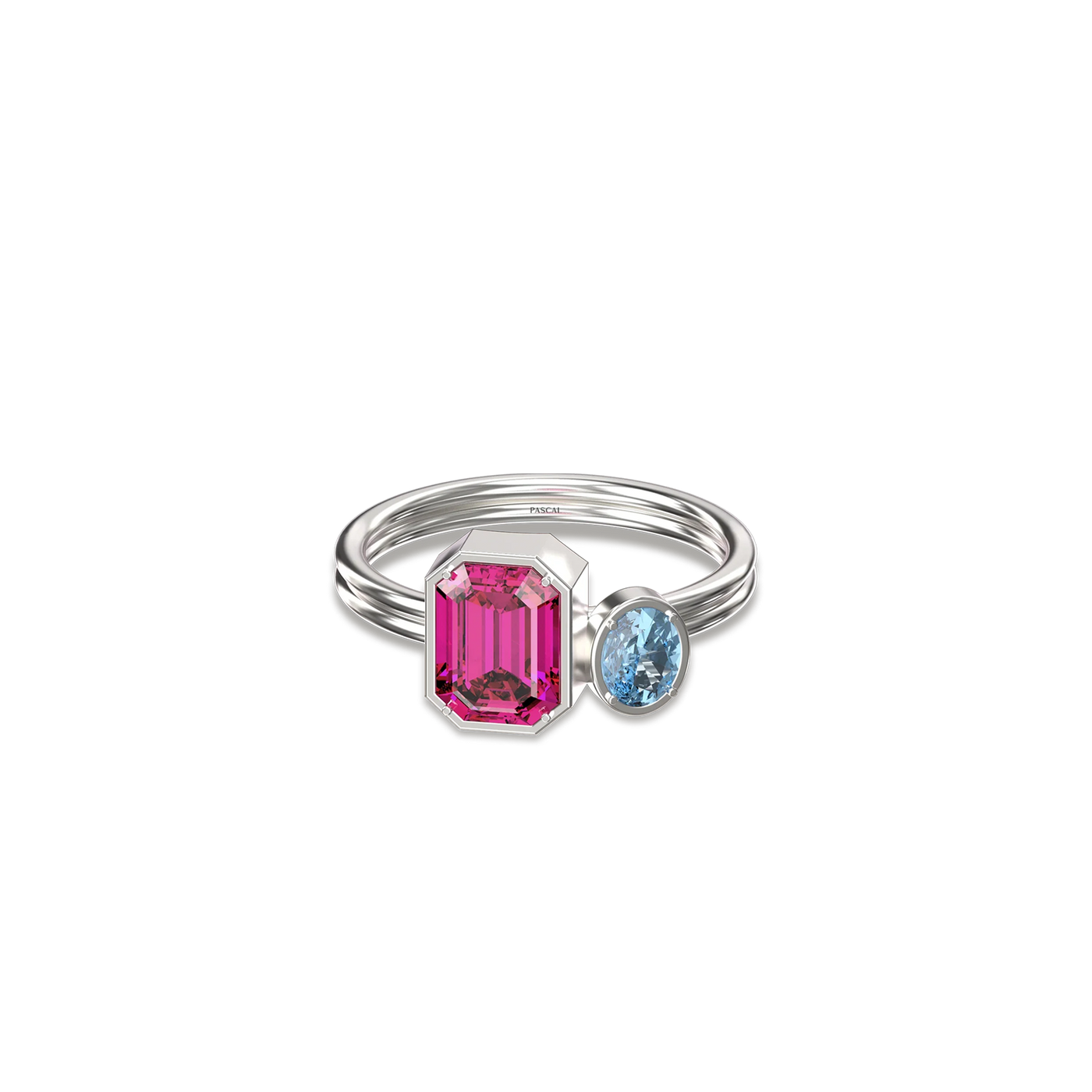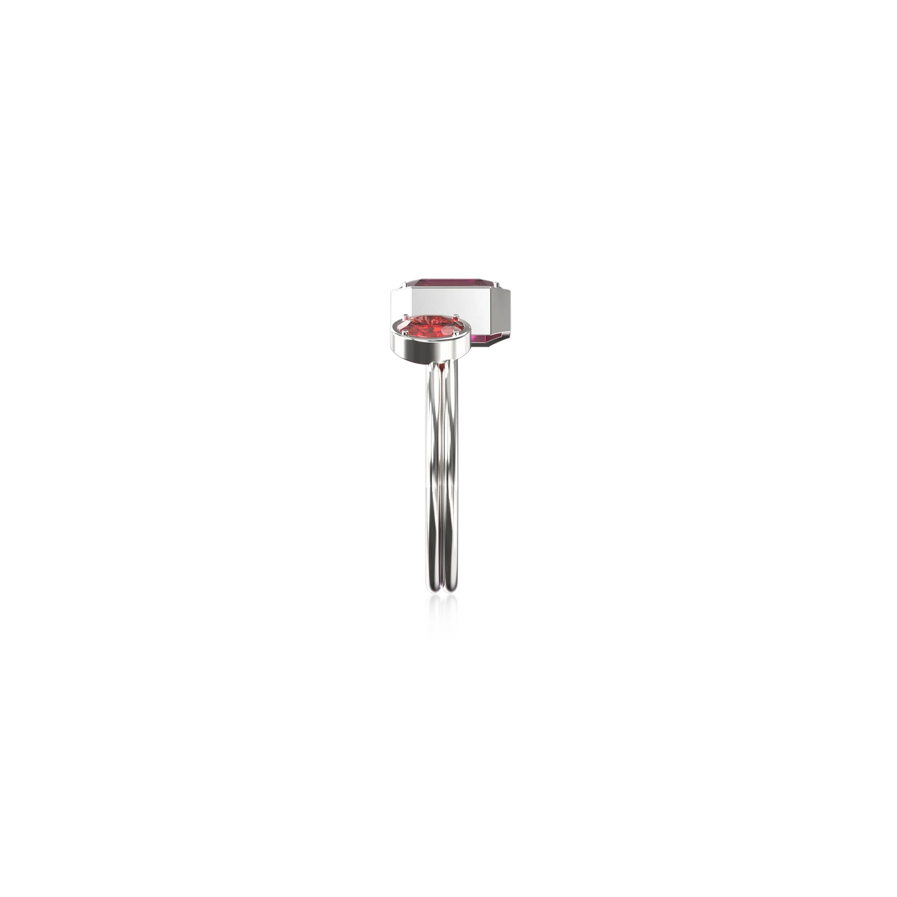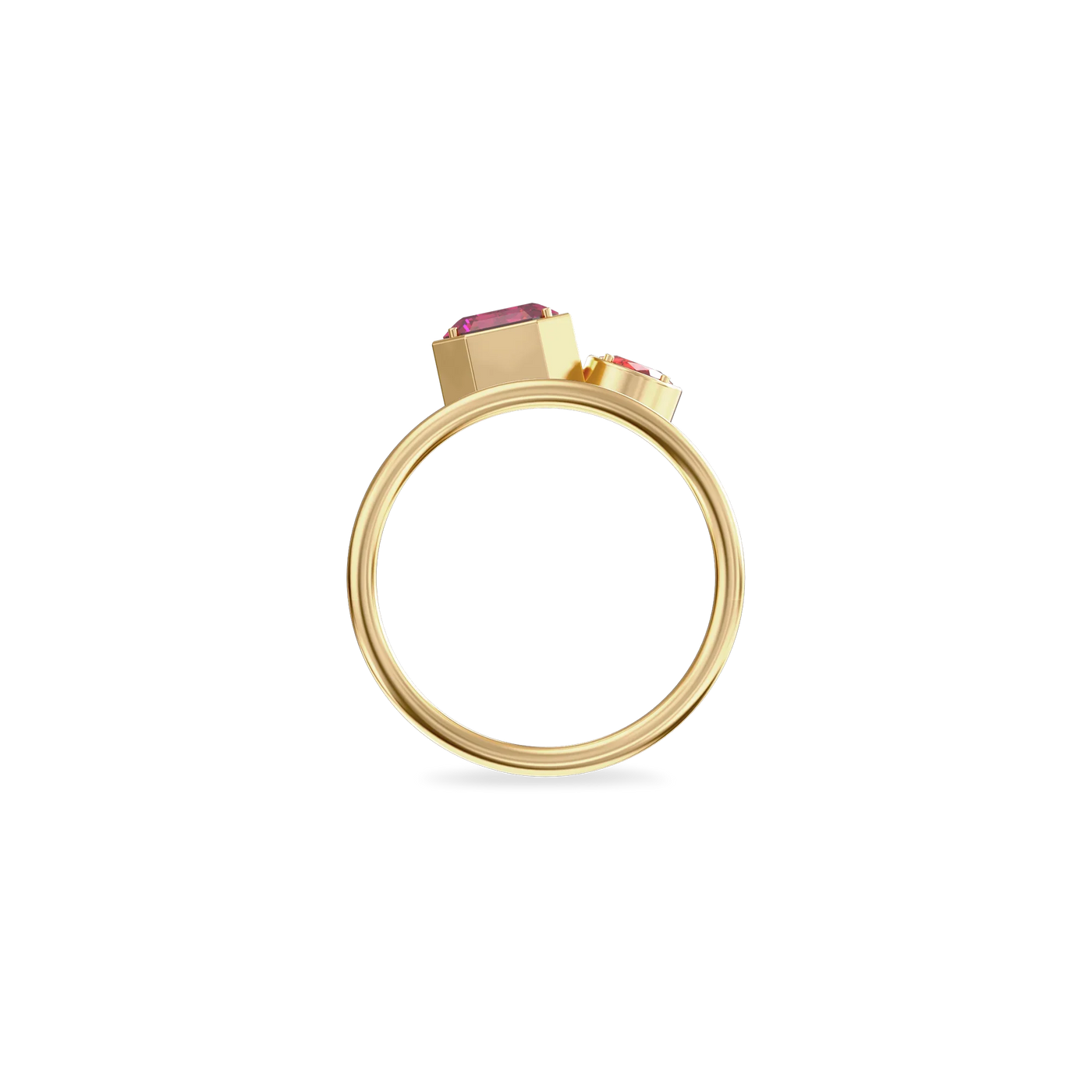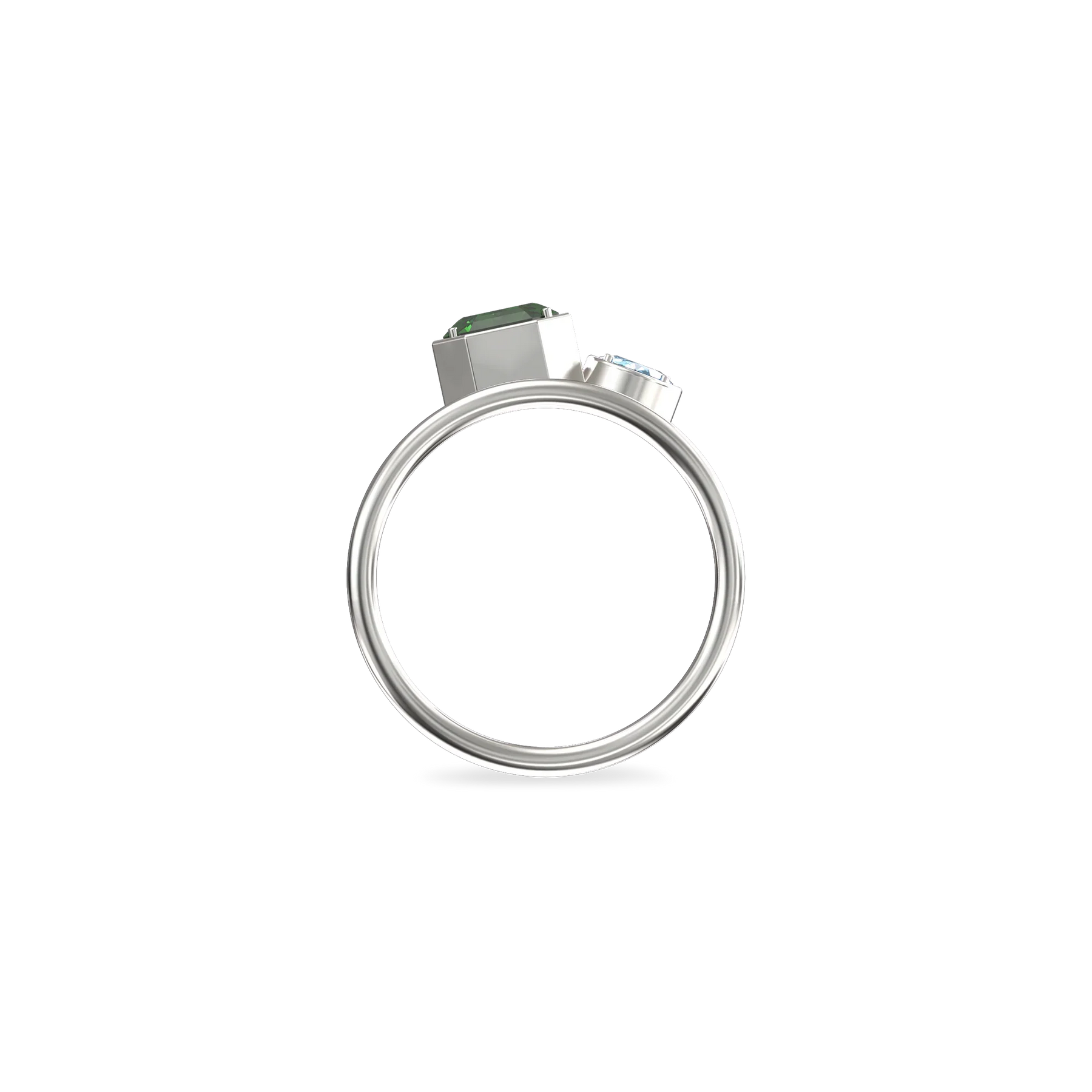 The Toi Et Moi Gemstone Ring features a unique stacked design concept, bringing together a larger emerald-cut lab- grown gemstone and a smaller oval-cut lab-grown gemstone in an intimate arrangement that symbolizes companionship and mutual support.