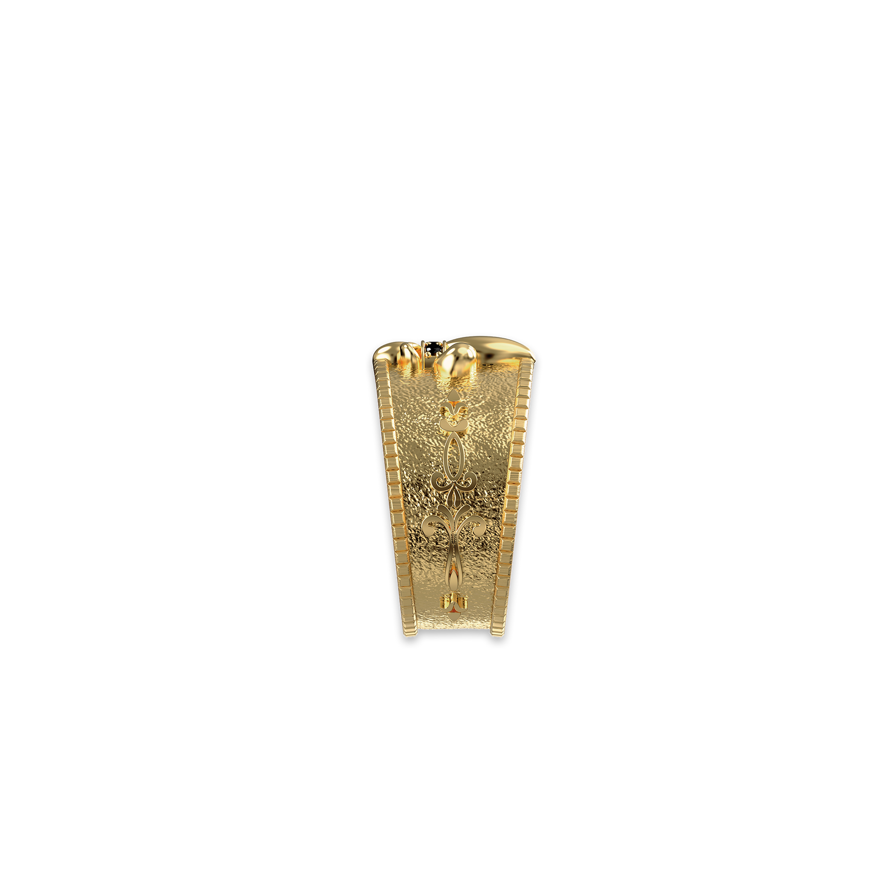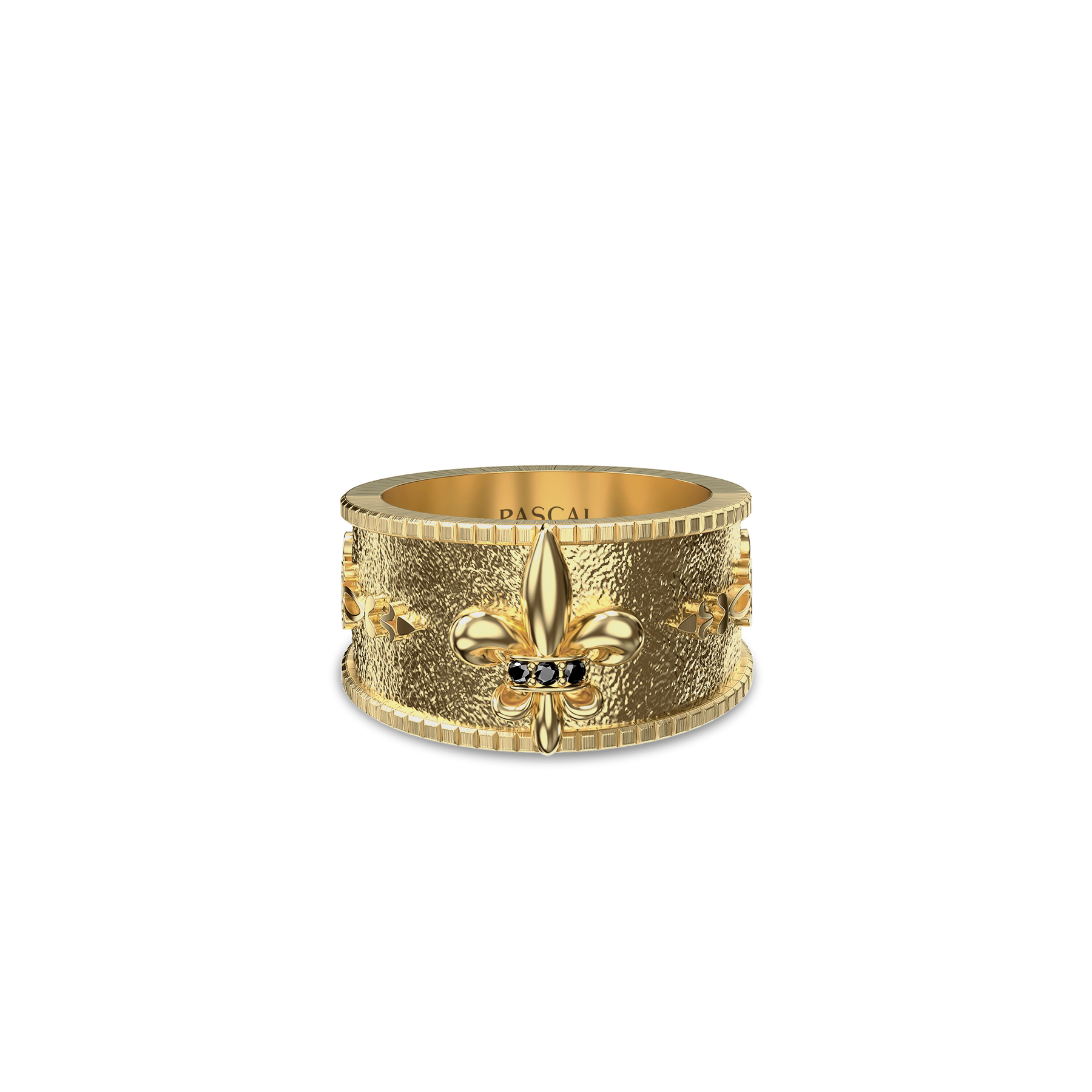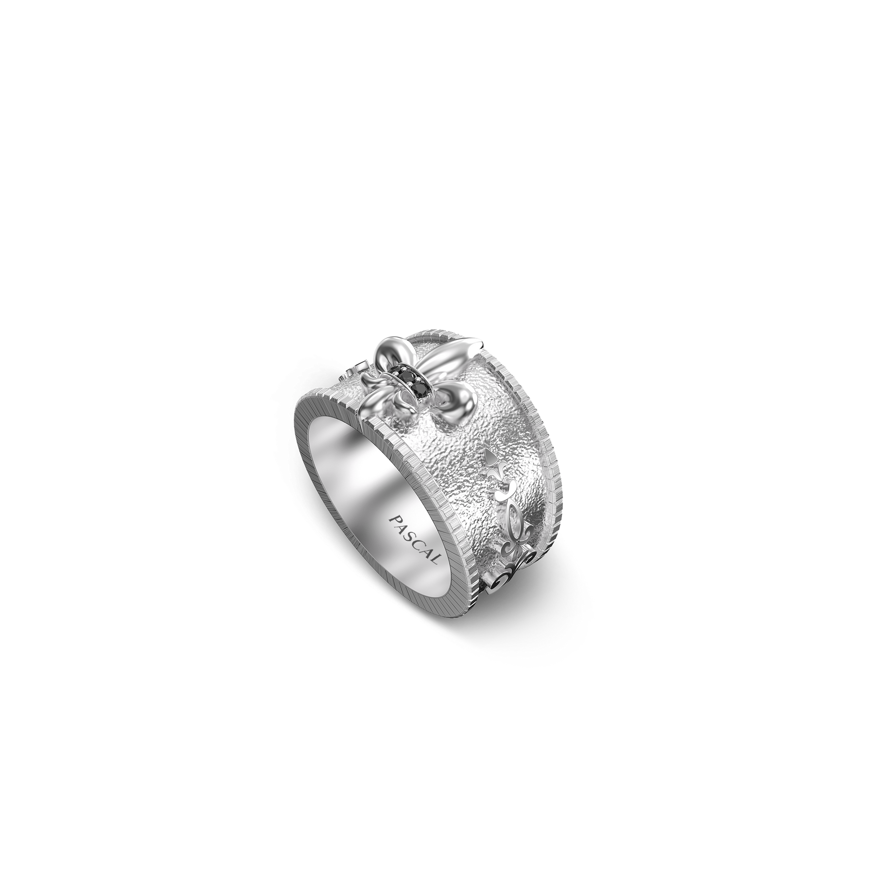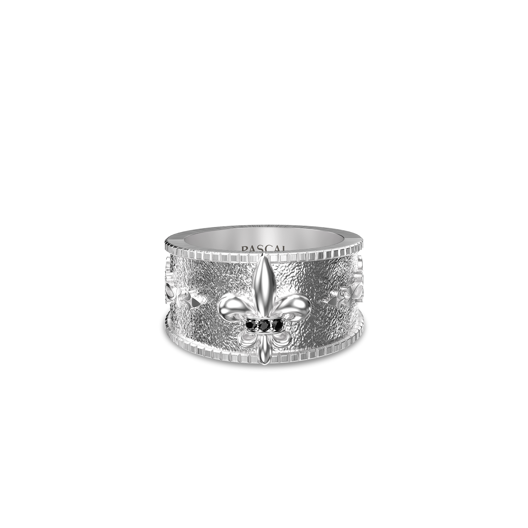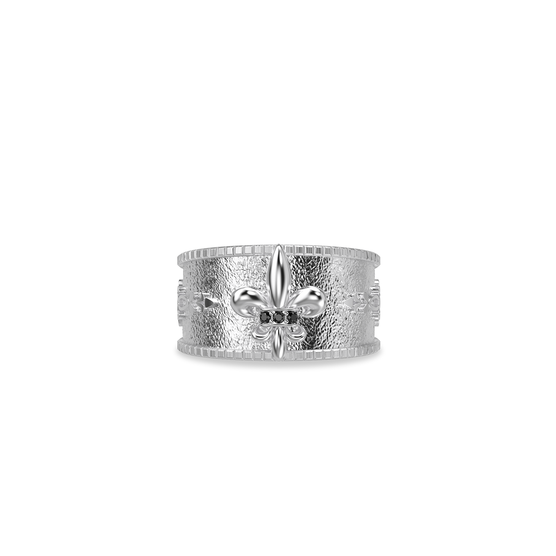 Inspired by medieval fleur-de-lis heraldry, this band ring distills strength, honor, and a sense of order into a bold, wide-profile design. The solid, well-defined band is structured and confident, with a sculpted fleur-de-lis motif standing prominently as a symbol of purity, conviction, and inner resolve.