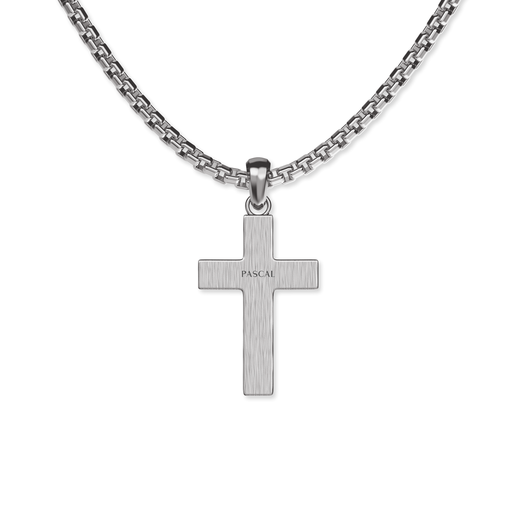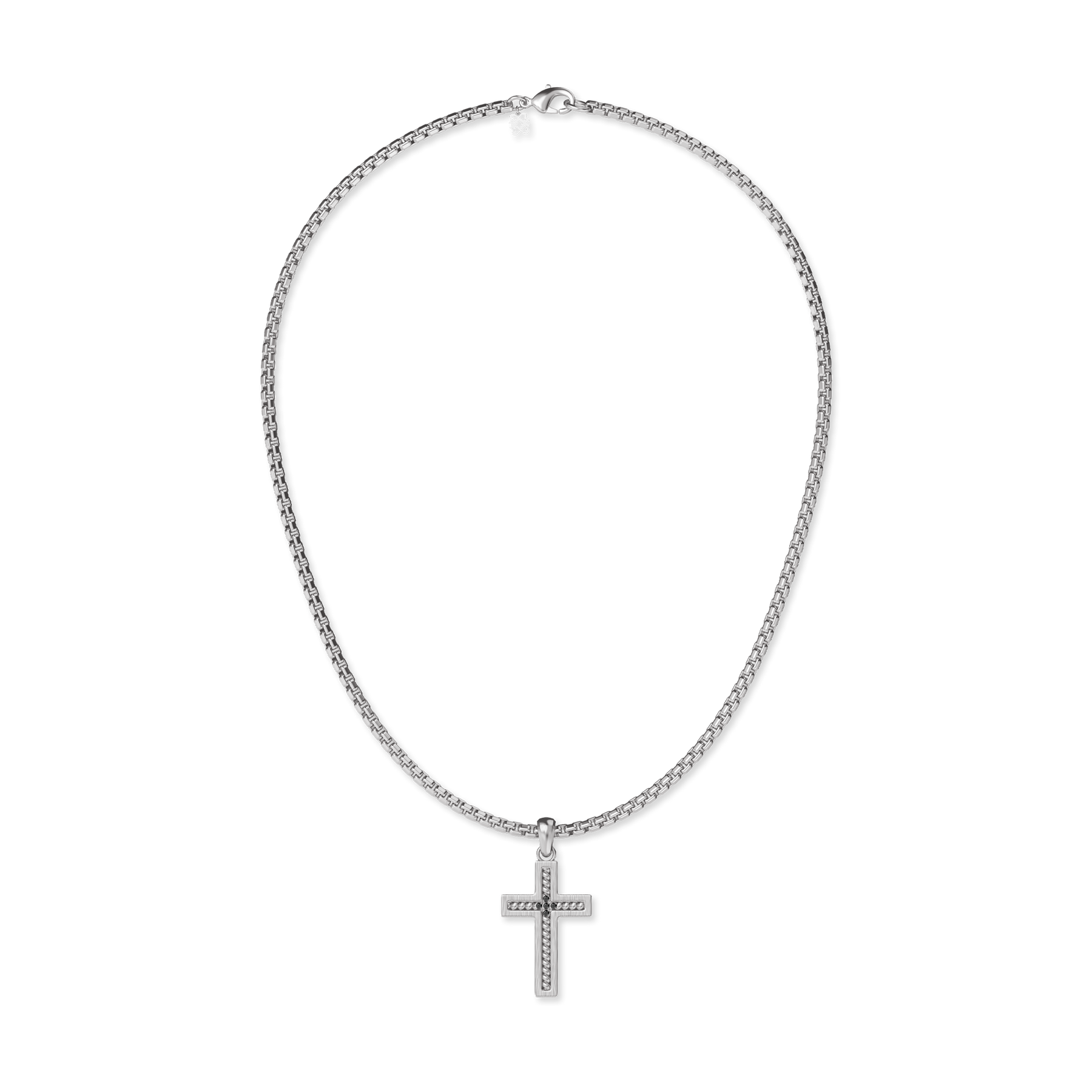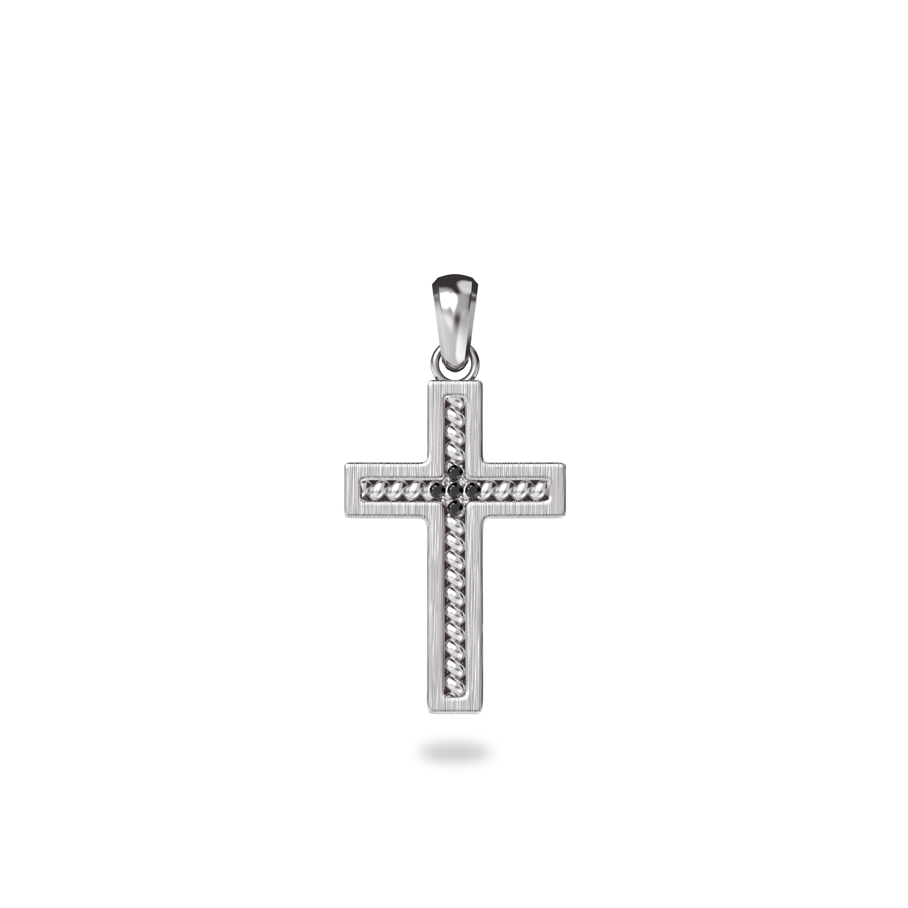 Este pendente de cruz é construído sobre uma silhueta clássica com linhas limpas e refinadas. No seu centro, um motivo de corda torcida traz profundidade e artesanato intricado, enquanto cinco brilhantes diamantes cultivados em laboratório acentuam a interseção, cintilando como luz das estrelas para destacar a solenidade e o brilho da cruz.