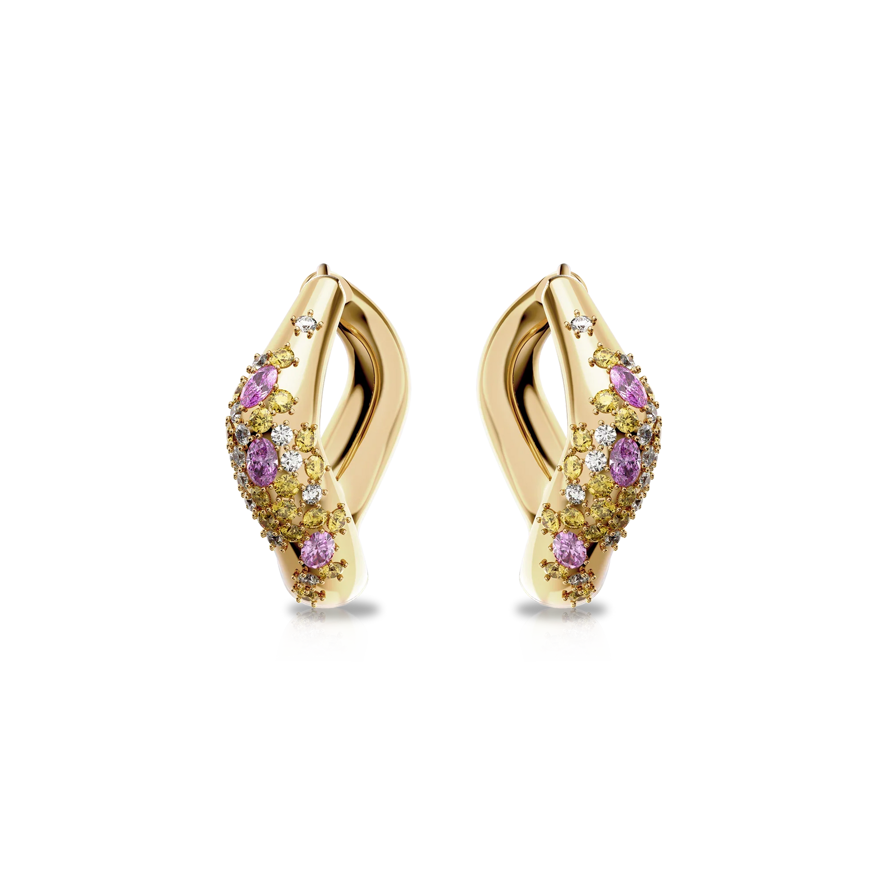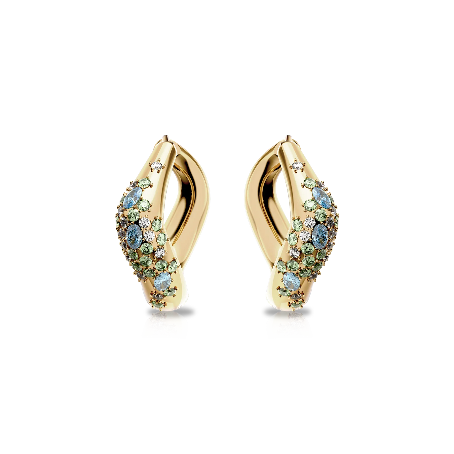 Estas encantadoras argolas fazem um uso audacioso de diamantes e pedras preciosas em várias formas e cores para um estilo colorido, sonhador e romântico.
