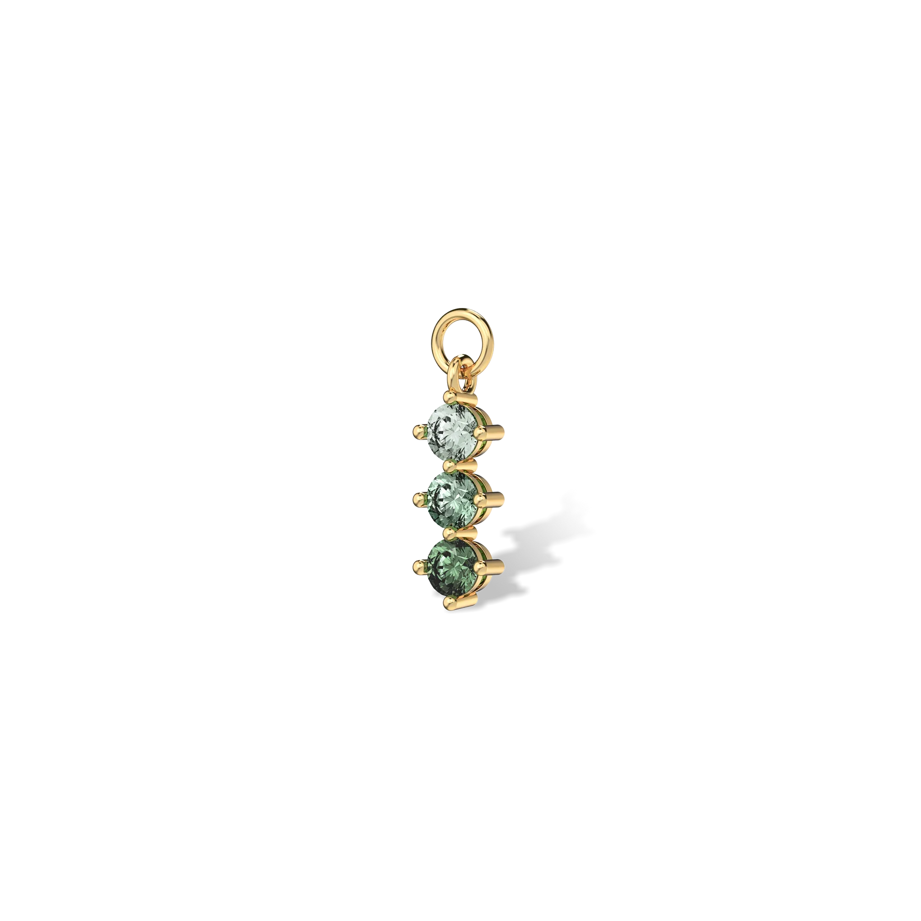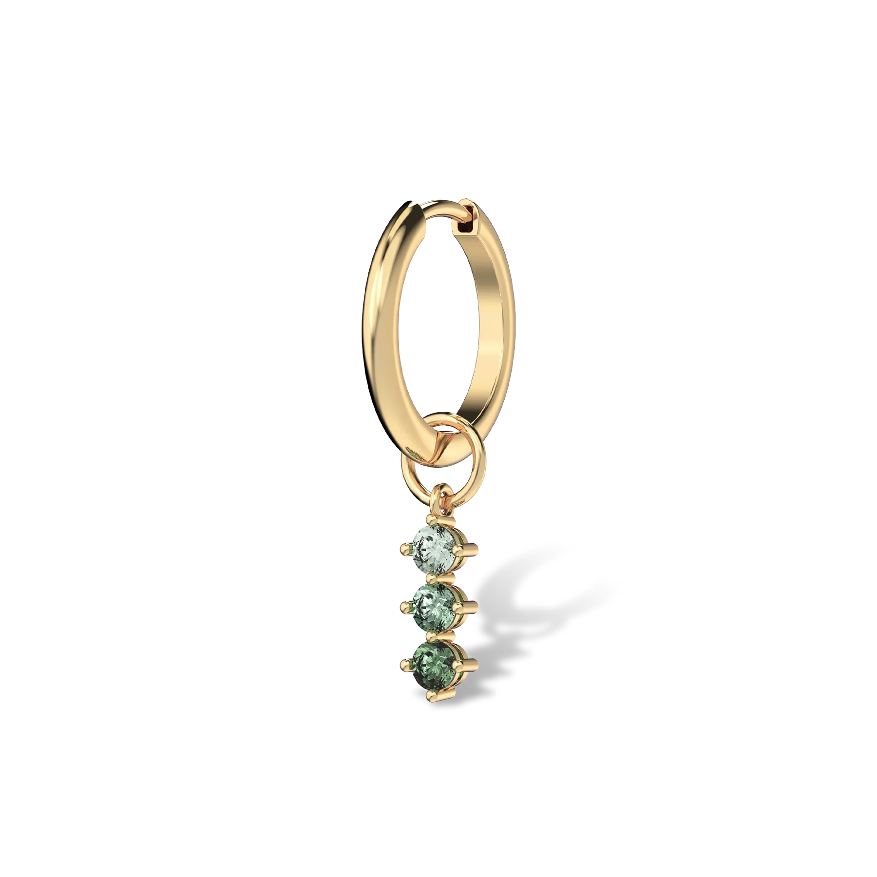 Este pendente de argola em cor dourada apresenta três pedras preciosas cultivadas em laboratório de 3mm num belo gradiente de cor e combina bem com os brincos básicos de argola fina de 2mm.