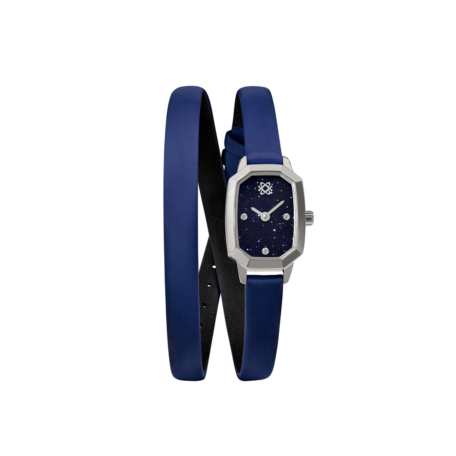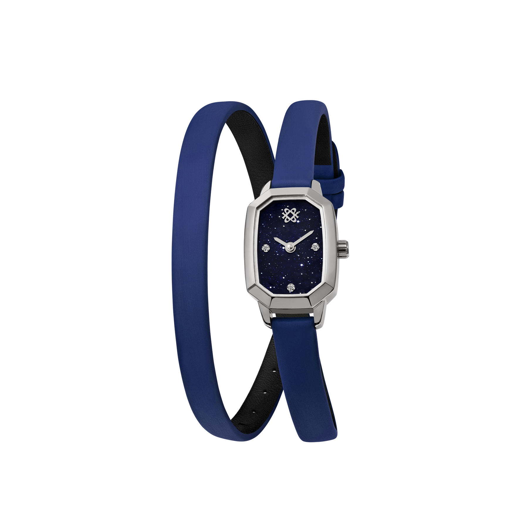 A luneta em forma de esmeralda encapsula um estilo moderno, enquanto o mostrador de arenito azul brilha como o céu estrelado, evocando uma galáxia romântica no pulso. Combinado com uma correia de duplo círculo, manifesta uma atitude de moda única.
