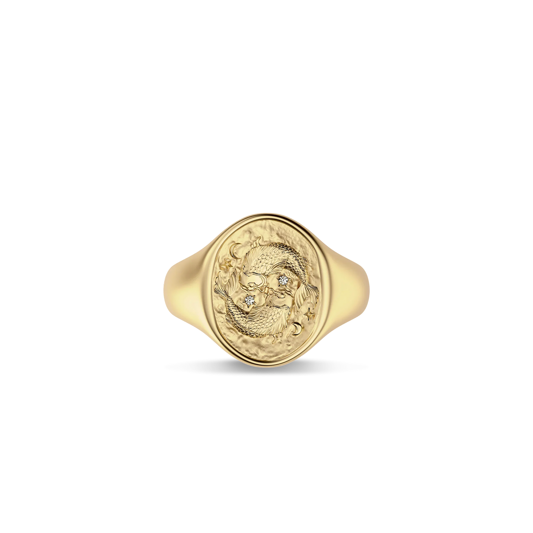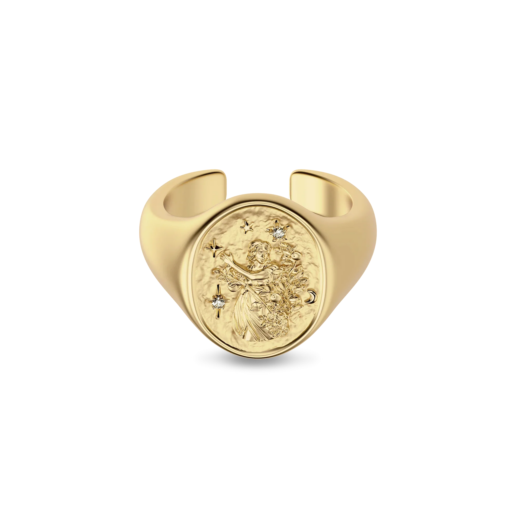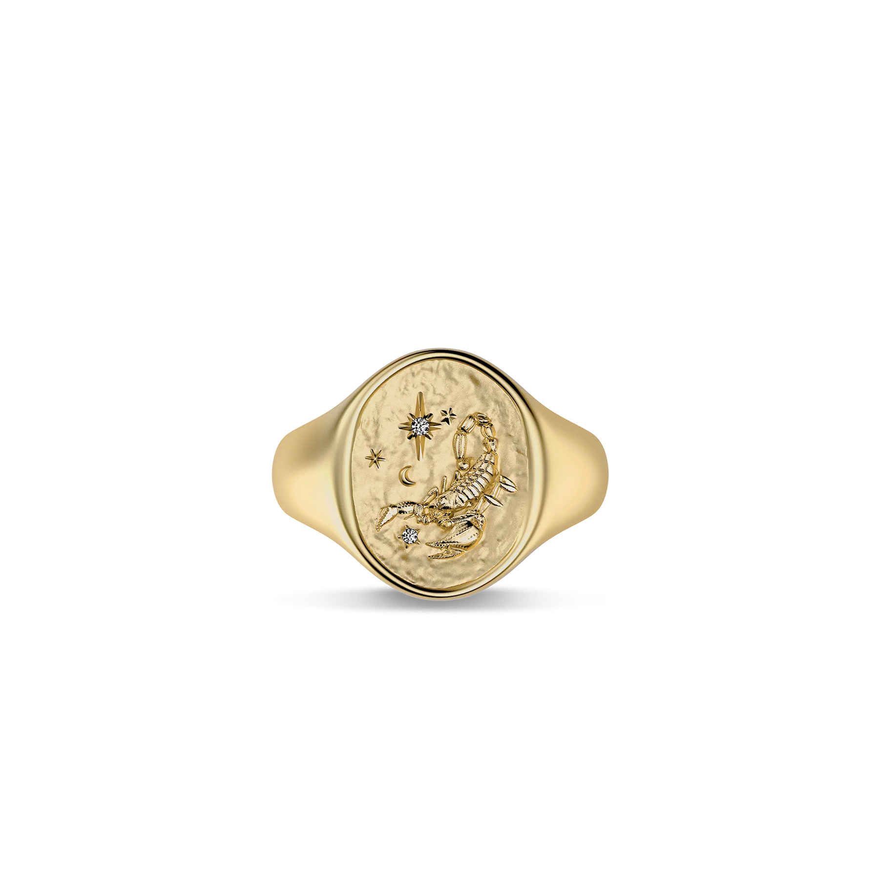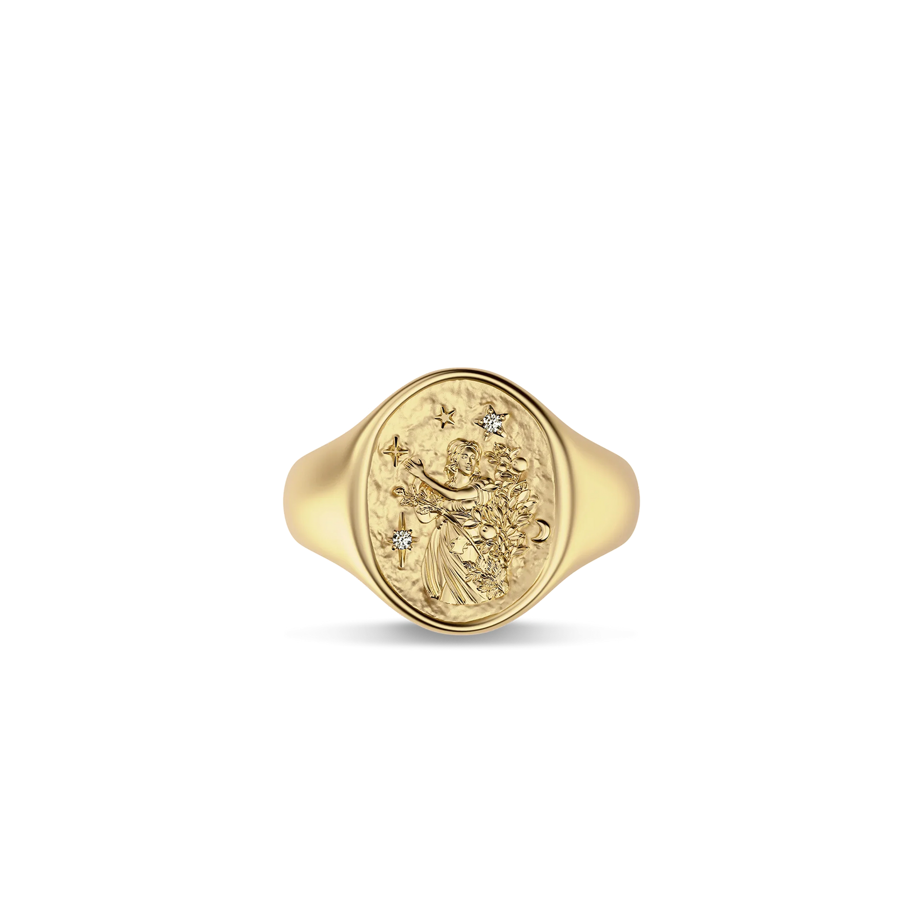 Apresentamos a nossa Coleção de Anéis Signet de Diamante do Zodíaco, uma série inspirada no vintage que captura a beleza das estrelas. Cada anel desta coleção apresenta um design oval em forma de sinete, reminiscente dos anéis signet clássicos.