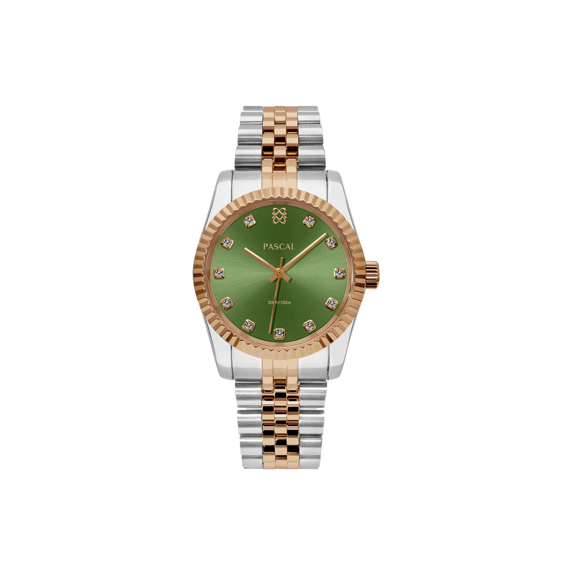The classic design blends perfectly with the modern appeal of a stunning avocado green dial. Exquisite diamond-embellished watches add extra charm to every glance.