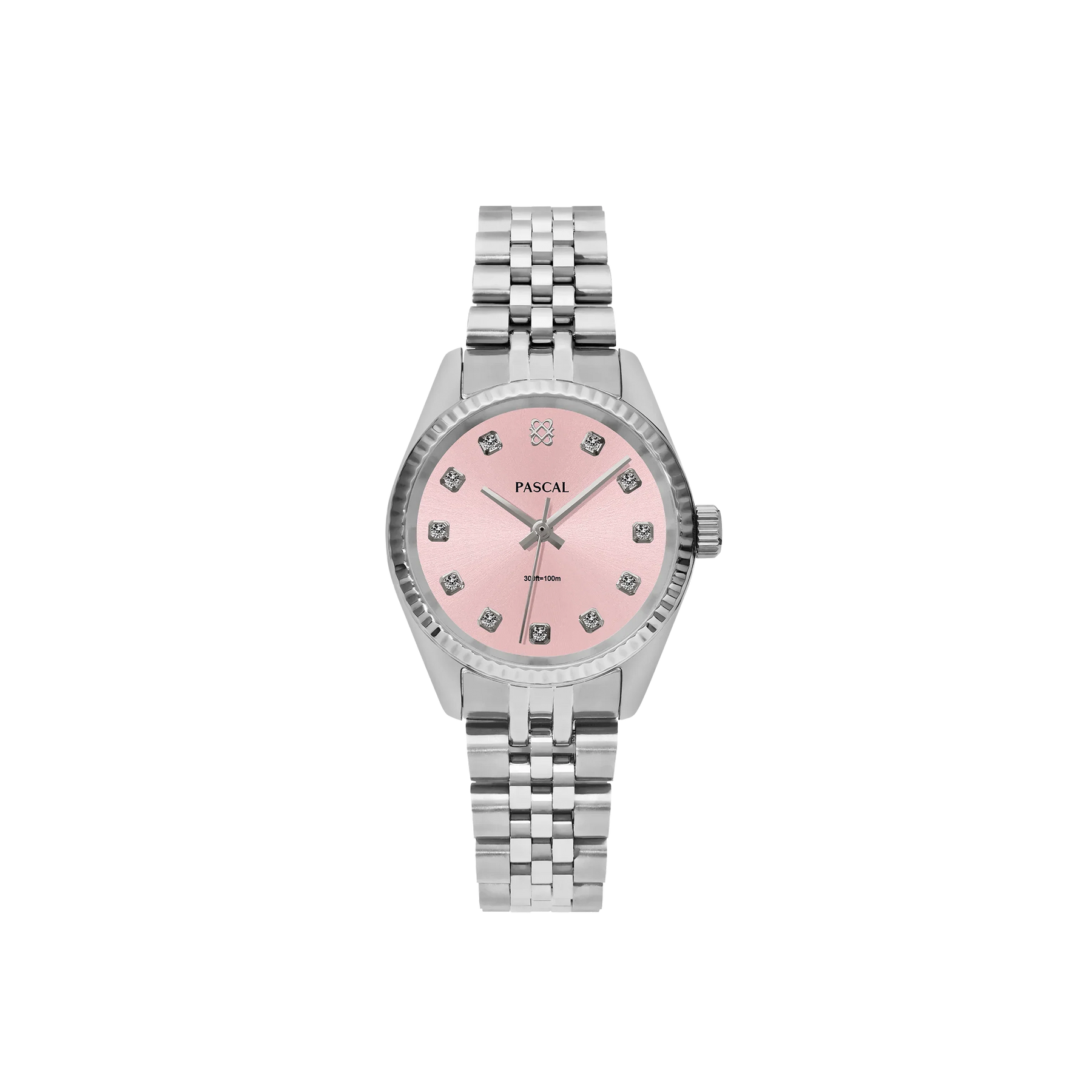 Where Classic Meets Contemporary. A versatile blend of timeless sophistication and modern allure. Adorned with radiant diamonds, its soft pink dial exudes elegance. This is a go-to accessory for fashion-forward refinement.