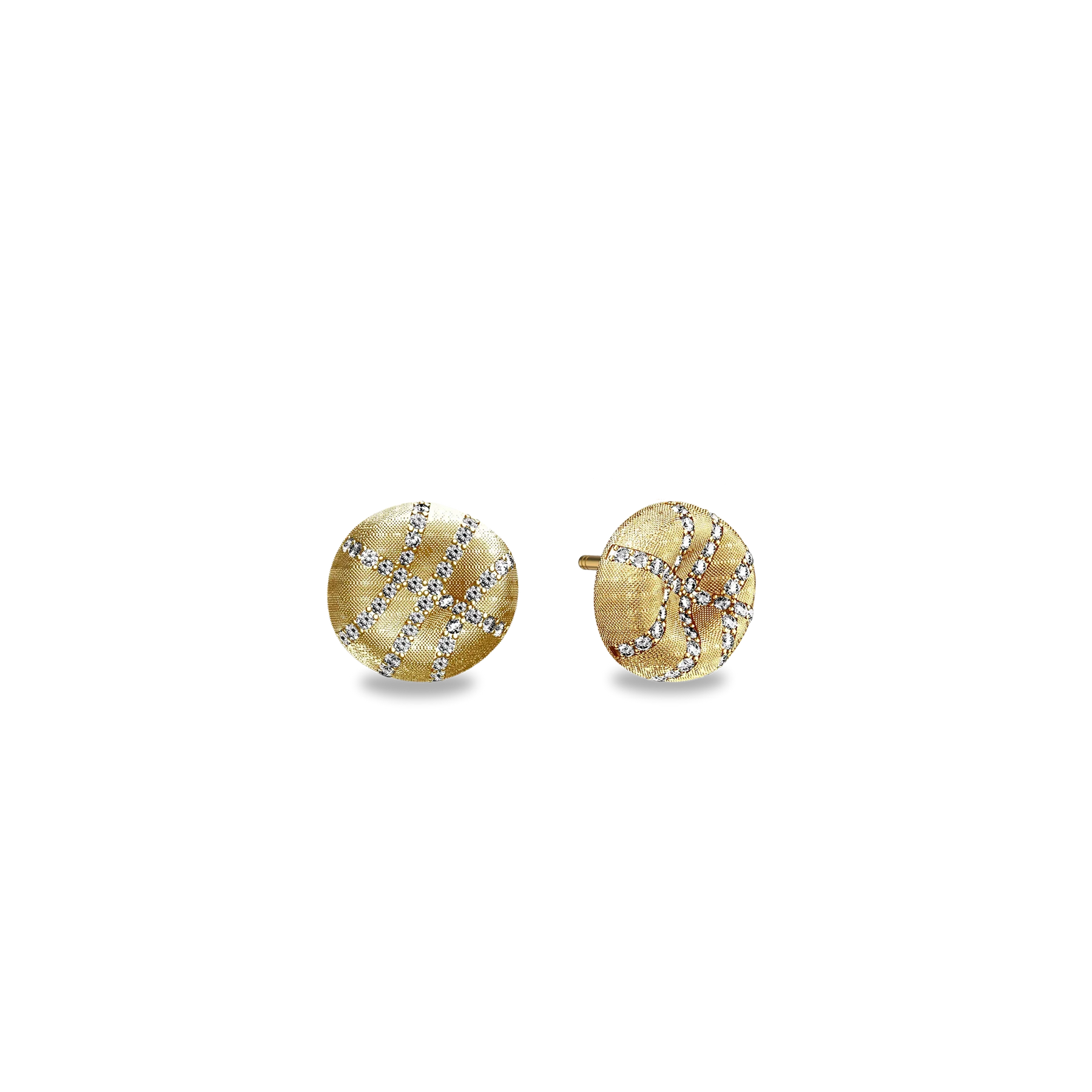 'The Basketball' Crooked Ball Örhängen, Vit Diamant Pavé
