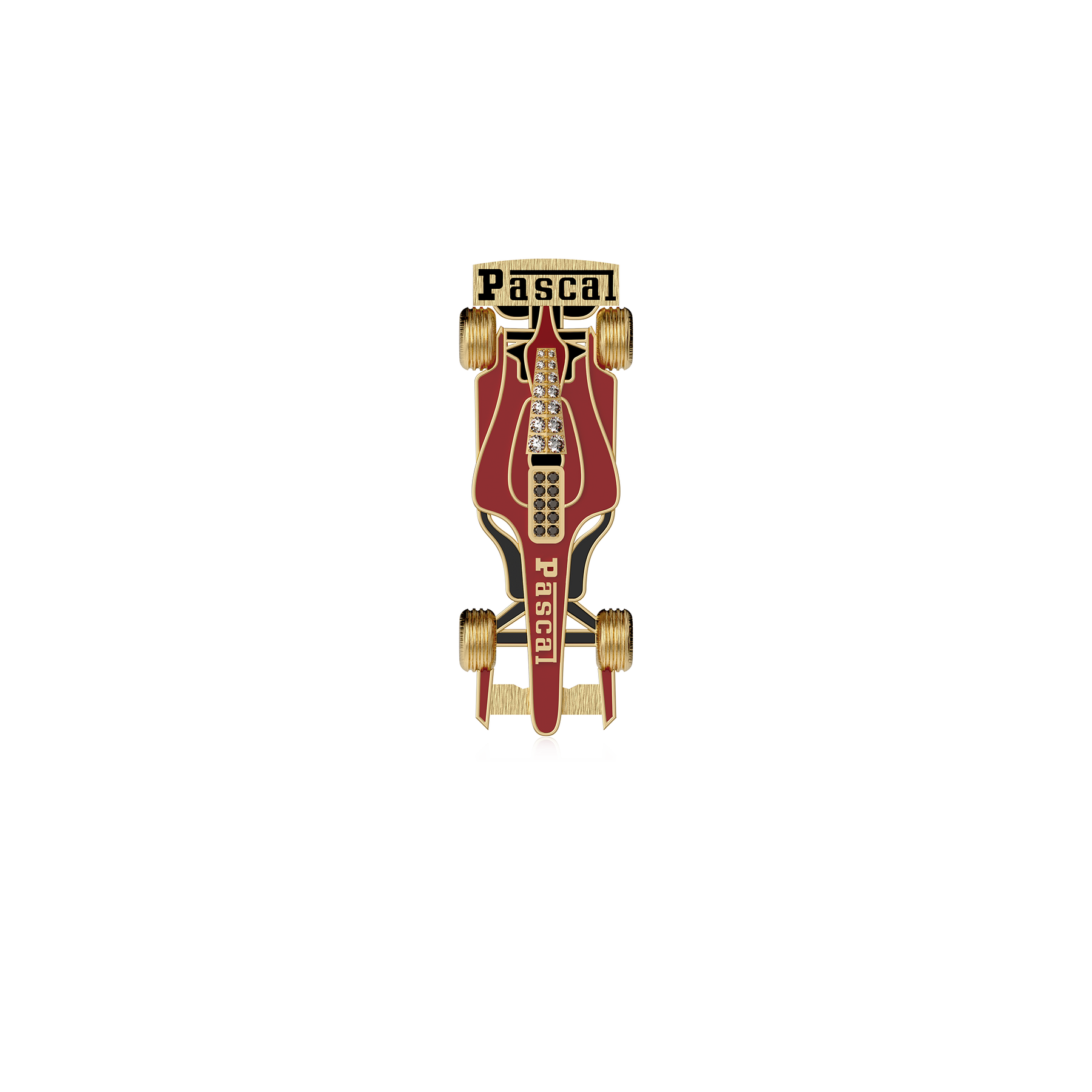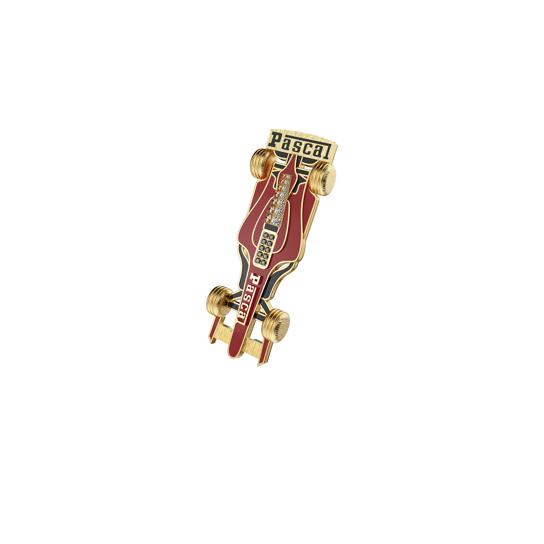 Denna utsökta racingbrosch hämtar sin inspiration från den ikoniska Monza Red – den passionerade färgen som älskas av varje Tifosi. Skulpturala, knivskarpa linjer möter förfiningen av handpolerade texturer, medan de svarta och vita diamanterna som är infattade längs bilens kaross talar för sig själva och behöver inga fler ord för att uttrycka sin unika lockelse.